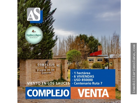 Está en VENTA este COMPLEJO de campo a minutos de la ciudad. Ubicado junto a la Ruta 7 a dos km de la ciudad de Centenario. Entre calle 8 Y 9. El terreno total tiene aproximadamente 1 hectárea y es una combinación de viviendas y espacios verdes. Son 6 VIVIENDAS totalmente equipadas. 2 piscinas y un galpón. CASA I_ 3 DORMITORIOS, COCINA-COMEDOR INTEGRADO, ESTAR, COMEDOR, LAVADERO, BAÑO COMPLETO, QUINCHO CON PARRILLA, PILETA Y HORNO DE BARRO. Sup total, 204m2 CASA II_ 2 DORMITORIOS, COCINA-COMEDOR INTEGRADO, BAÑO COMPLETO, CON PARRILLA. Sup total, 85m2 CASA III_2 DORMITORIOS, COCINA-COMEDOR ESTAR INTEGRADO, BAÑO COMPLETO, CON PARRILLA. Sup total, 104m2 CASA IV_ 2 DORMITORIOS, COCINA-COMEDOR ESTAR INTEGRADO, BAÑO COMPLETO, CON PARRILLA Y GALERÍA. + GALPON Sup total, 339m2 CASA V_ 1 DORMITORIOS, COCINA-COMEDOR INTEGRADO, BAÑO COMPLETO, CON PARRILLA. ENTRADA SEMI CUBIERTA PARA 4 VEHÍCULOS. Sup total, 163m2 CASA VI_ MONOAMBIENTE, COCINA-COMEDOR INTEGRADO, BAÑO COMPLETO, CON PARRILLA. Sup total, 71m2 POSEE SERVICIOS DE LUZ (ENERGÍA SUBTERRÁNEA, CONEXIÓN DE LUZ TRIFÁSICA), GAS INDUSTRIAL. RIEGO POR ASPERSIÓN, TODA LA HECTÁREA CERCADA CON PAREDÓN Y ALAMBRE, AGUA, INTERNET, PORTÓN ELÉCTRICO, CÁMARAS DE SEGURIDAD. 2 PISCINAS DE FIBRA. Programamos tu visita con Ayelen Solana al https://wa.me/542995180391 O bien con Carolina Raposo https://wa.me/542996284980